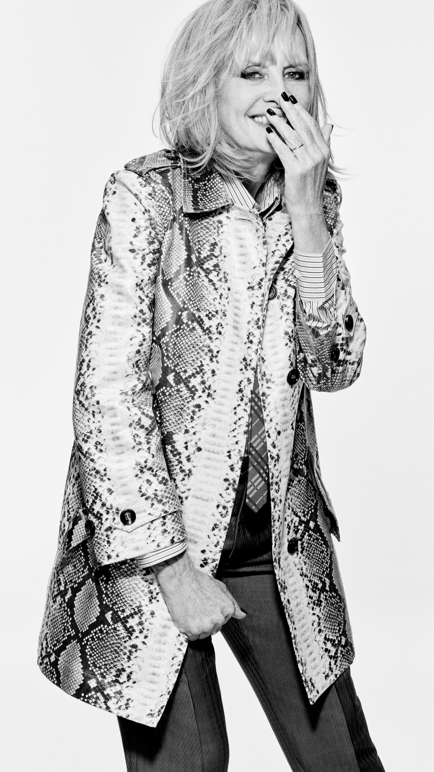 The collection sees a return to slim, mod-ish tailoring in mohair wool, denim and whipstitched leather. Three-button jackets – in short, single- or double-breasted cuts – are paired with tapered straight-leg trousers, layered over striped Sea Island cotton shirts and skinny silk ties jacquard-woven with Burberry Check.