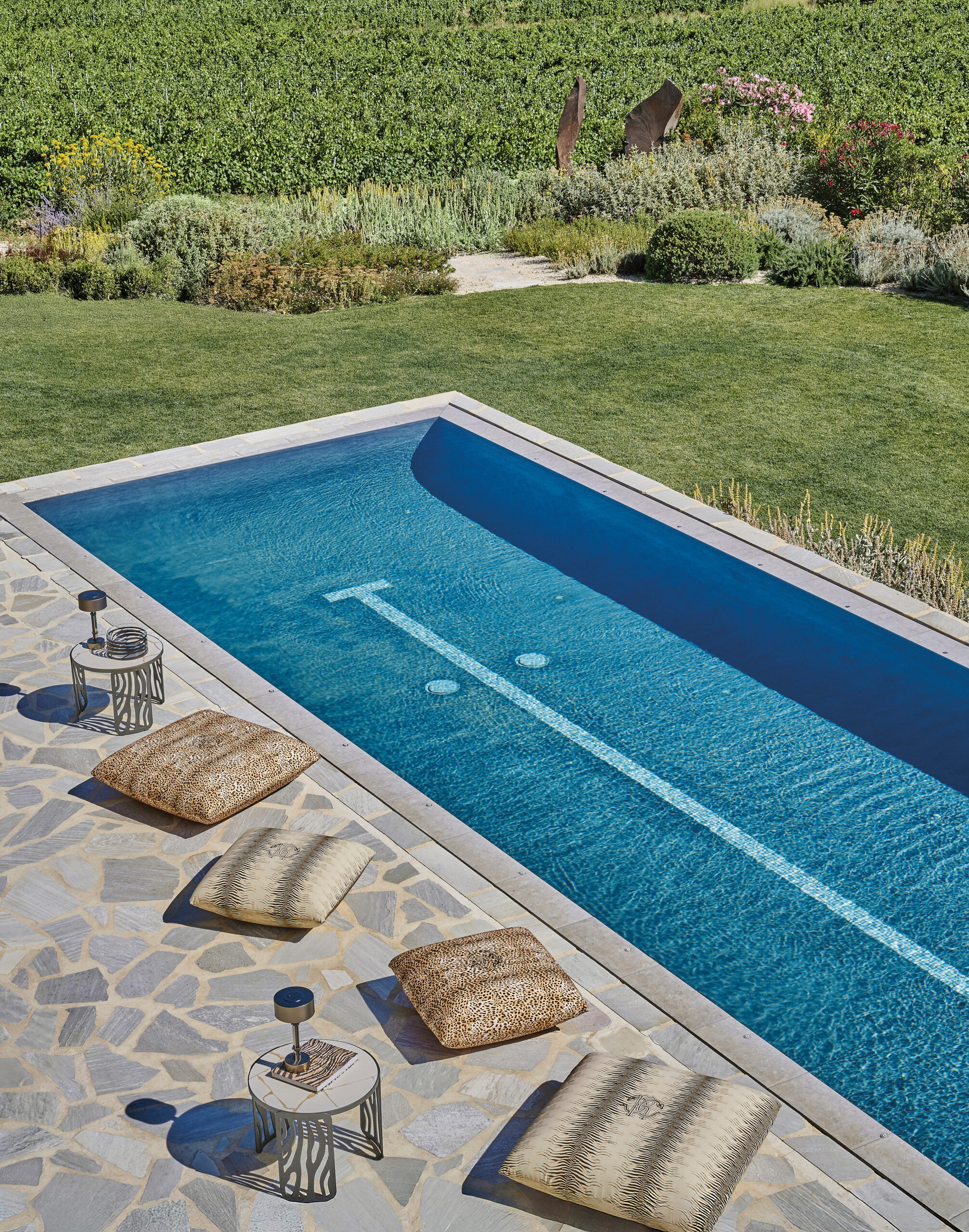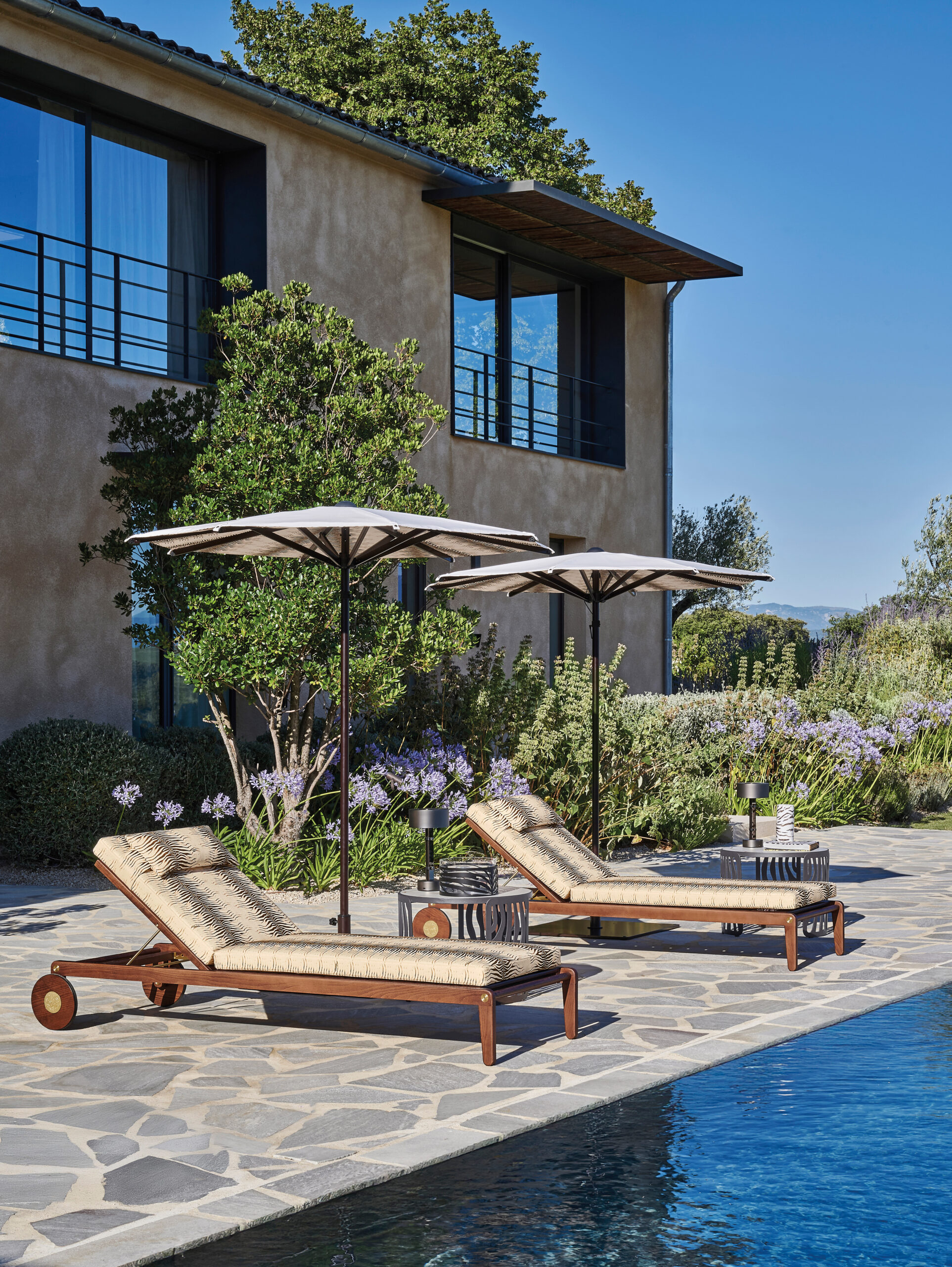 Within the settings presented in the new catalogue, calibrated volumes, warm hues and sculpted lines define terraces and gardens into scenes of magnetic allure, where design stands with unwavering authority.