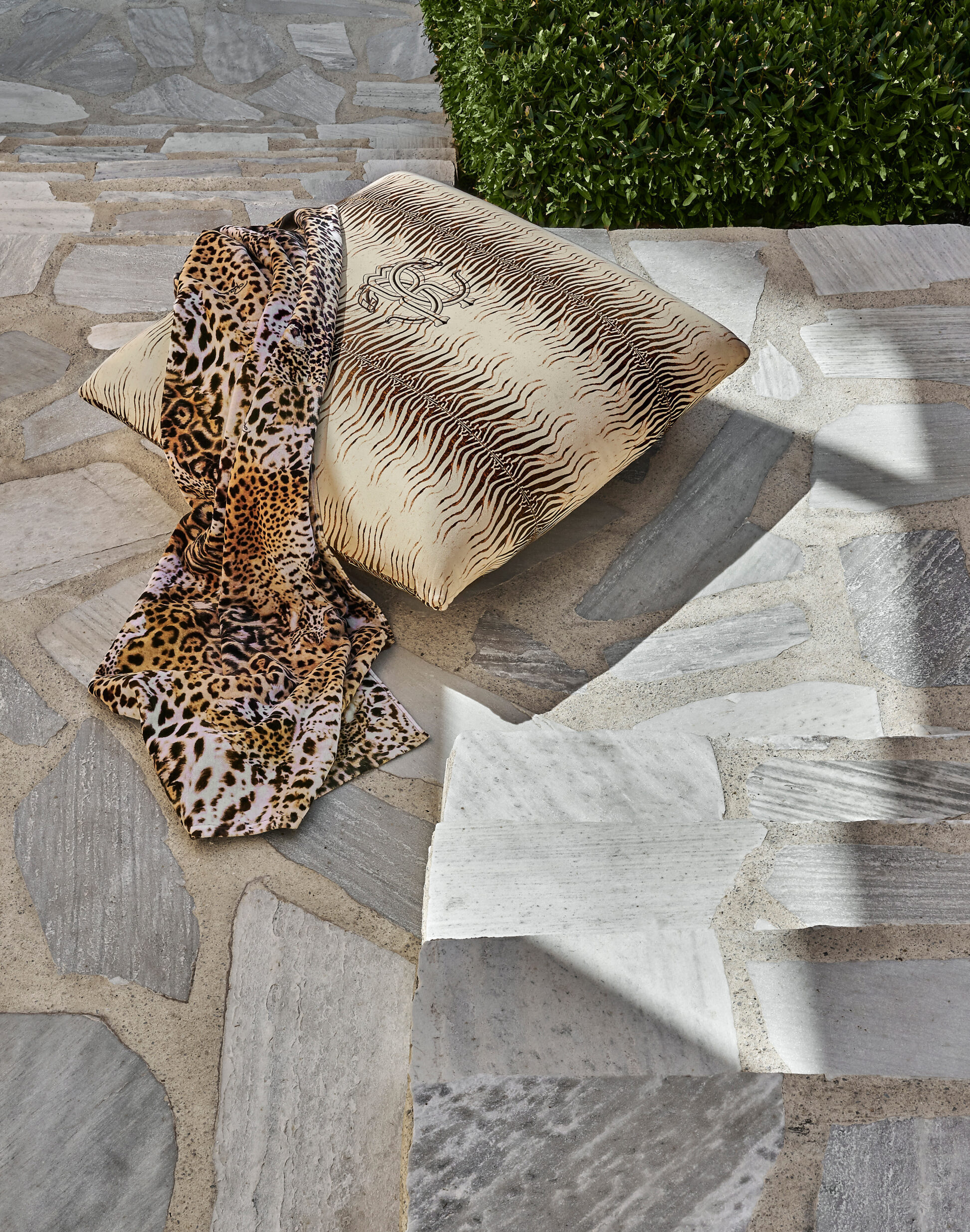 Two true must-haves for moments of sunshine and relaxation, the sunbed and deck chair from the Capoverde line are ideal for completing the outdoor furniture with style and elegance. Their clean, linear forms are enriched by details and fabrics typical of the Cavalli world that lend the whole a glamorous and decorative note.