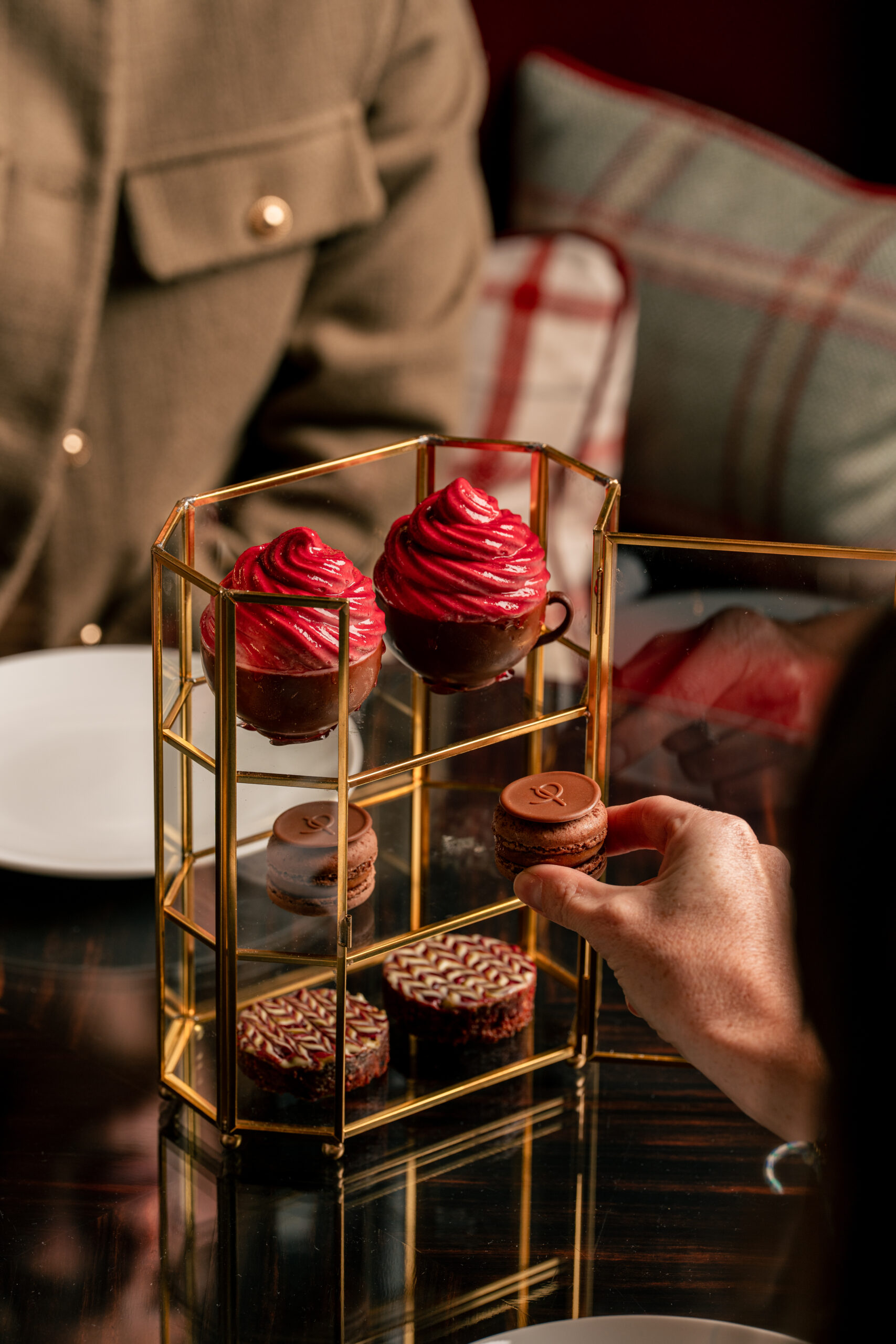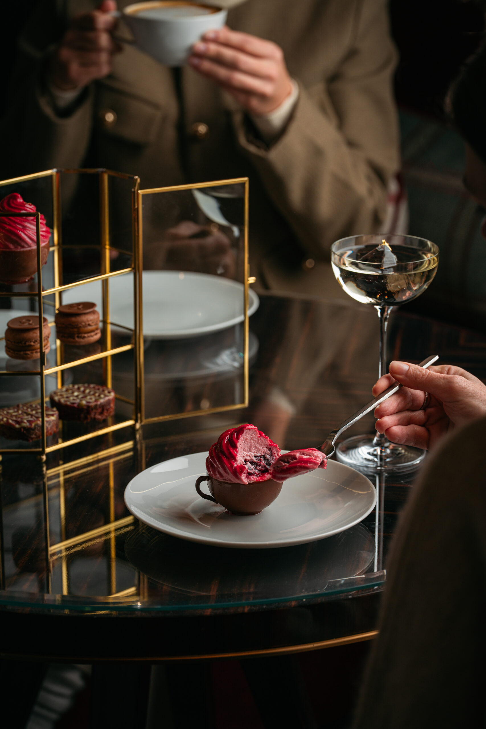 Highlights include Chocolat Show by Pomellato, a trompe-l’œil hot chocolate concealing a forêt noire heart beneath a vanilla mousse and glossy cherry glaze; the Signature Cookie Revisited, a playful composition of raspberry, caramel and praline rose topped with delicate raspberry pearls evoking Pomellato’s luminous gemstones; and the Piémont Hazelnut Macaron, embossed with the Pomellato “P” as a sweet emblem of authenticity. The experience is complemented by a refined selection of Laurent-Perrier Blanc de Blancs Champagne, teas from Palais des Thés or Tea Repertoire in Carouge, and a series of bespoke beverages including the NUDO mocktail with rice milk and saffron syrup, and TOGETHER, a cocktail blending butter-infused whiskey, grapefruit and Earl Grey tea.