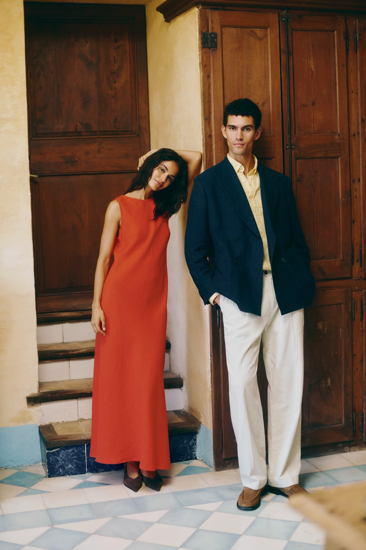 Set in a sun-drenched garden, the campaign captures an intimate outdoor lunch among family and friends: a gathering where style feels natural, personal, and lived-in. The collection features light linen tailoring, soft colors, and fluid dresses designed to move seamlessly from casual daytime invitations to elevated evening occasions.